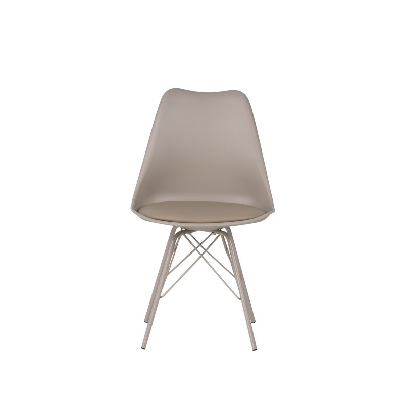 A cadeira KENDRA bege combina conforto e estilo, ideal para sala de jantar ou estar. Encosto ergonômico de polipropileno e assento acolchoado.