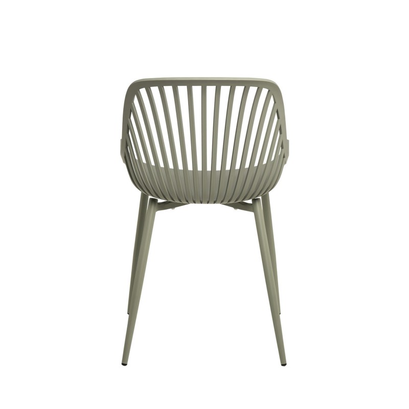 O encosto, composto por barras finas, adiciona um toque distintivo e moderno, enquanto as estilizadas pernas de metal reforçam seu aspecto sofisticado, tornando esta cadeira uma escolha ideal para qualquer espaço contemporâneo.