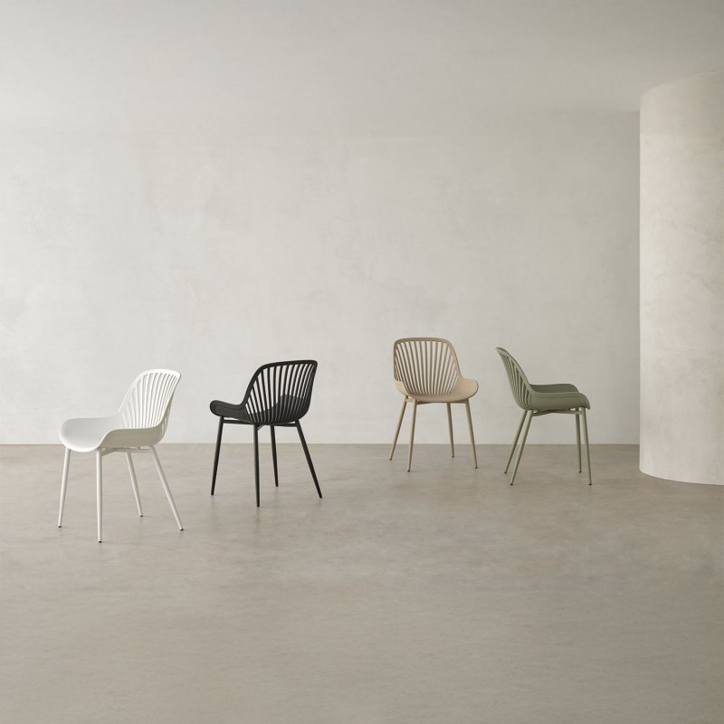A cadeira RANIA destaca-se por sua estrutura elegante de linhas curvas que integram harmoniosamente o encosto, o assento e os braços em uma única peça, proporcionando uma experiência de conforto excepcional graças ao seu design ergonômico.