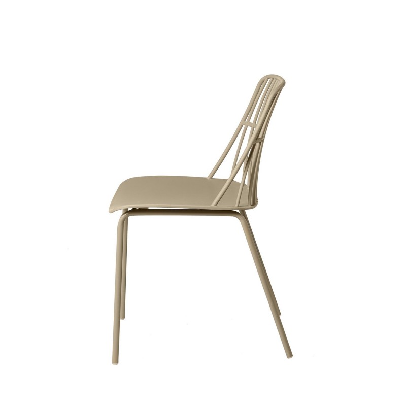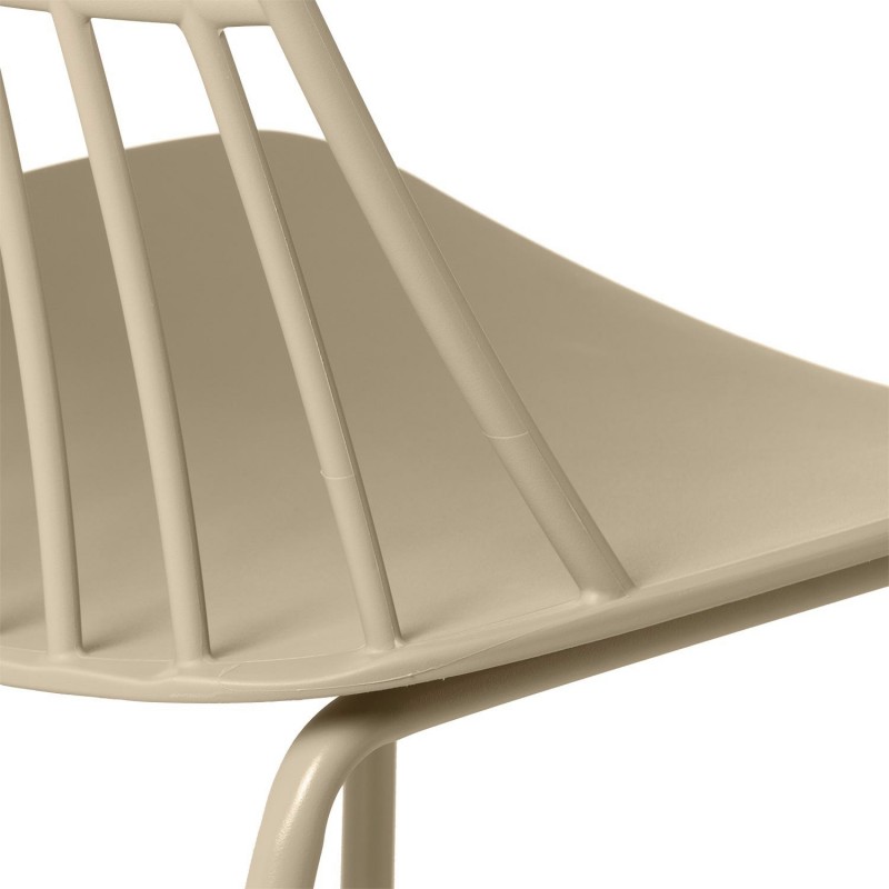 A cadeira NERINA tem o assento e o encosto compostos de polipropileno; seu design é caracterizado pelas barras finas do encosto, proporcionando um aspecto visualmente leve.