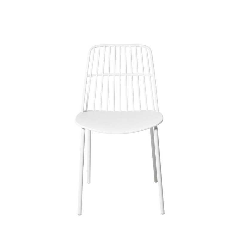A cadeira NERINA tem o assento e o encosto compostos de polipropileno; seu design é caracterizado pelas barras finas do encosto, proporcionando um aspecto visualmente leve.