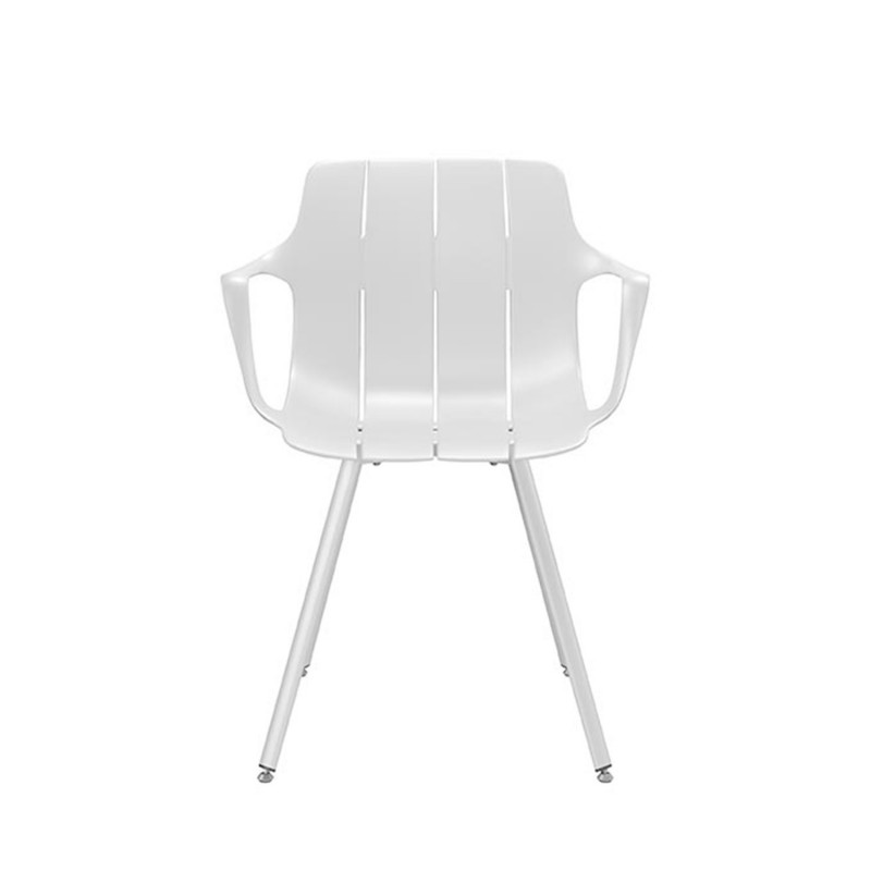 A cadeira YAMAL é composta por um assento, encosto e braços moldados em uma única peça de polipropileno, oferecendo um suporte ergonômico que se adapta perfeitamente ao corpo.
