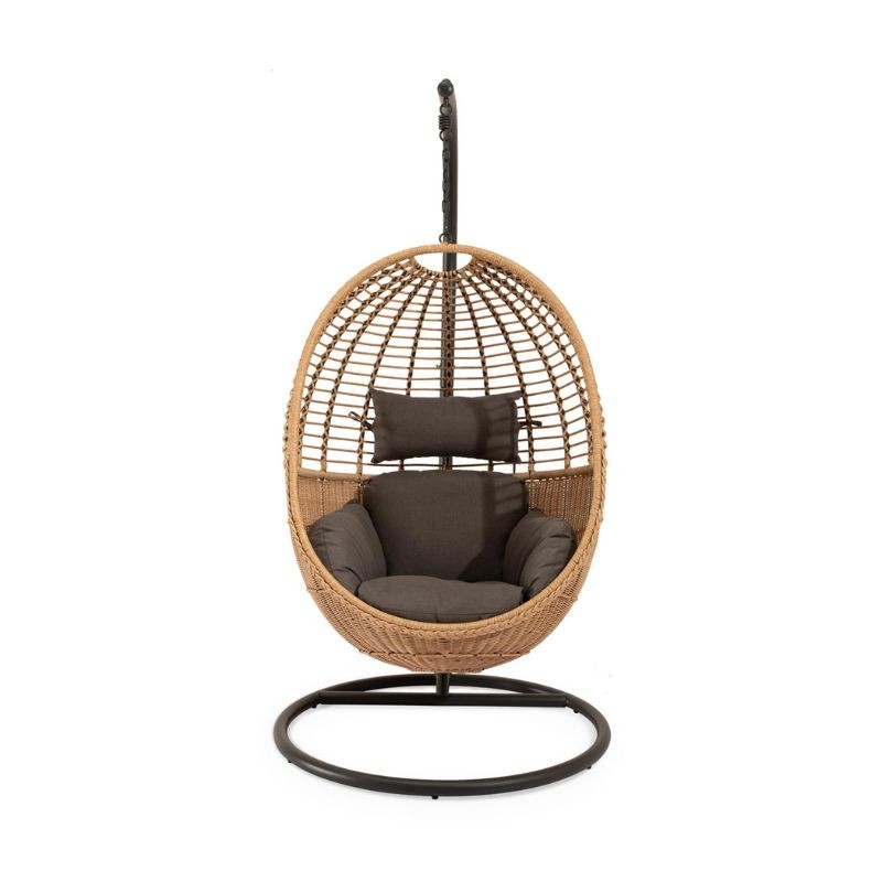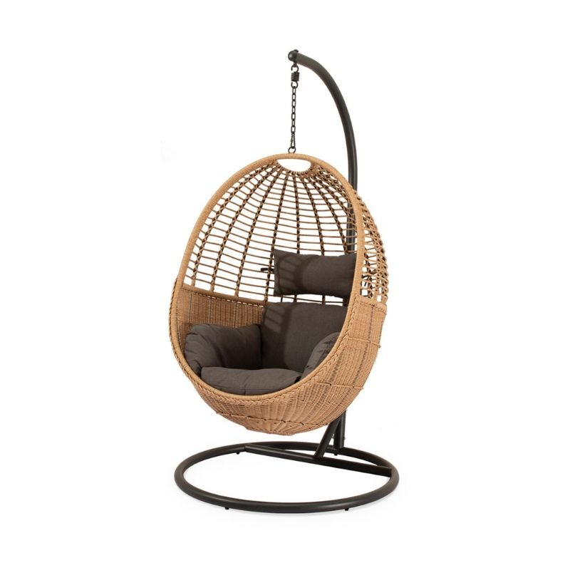 A poltrona suspensa Hannover cinza traz uma estética chique para jardins, terraços e outras áreas externas. É feita de rattan sintético de alta qualidade e também conta com uma estrutura de aço e almofada acolchoada.