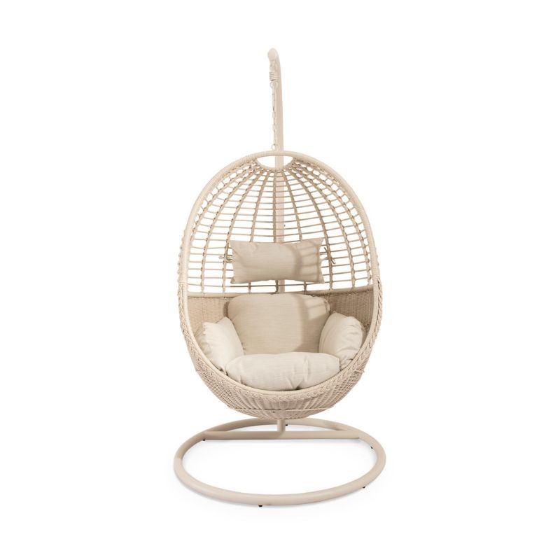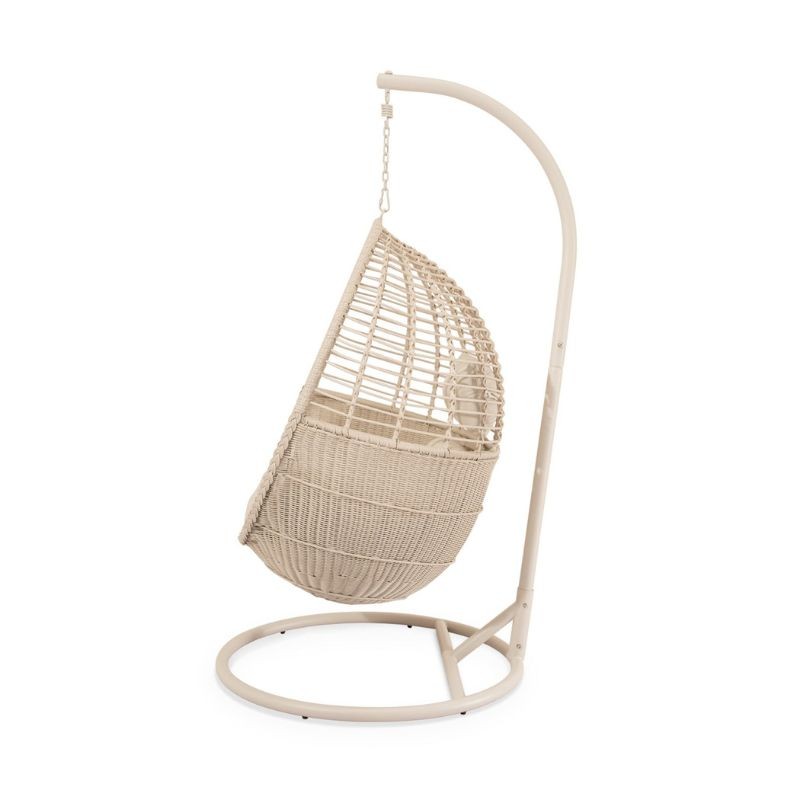 A poltrona suspensa Hannover bege traz uma estética chique para jardins, terraços e outras áreas externas. É feita de rattan sintético de alta qualidade e também conta com uma estrutura de aço e almofada acolchoada.