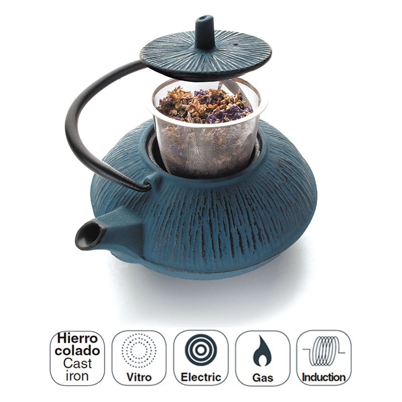 Chá azul artesanal construída em ferro fundido totalmente compatível com fogões a gás, placas de indução, placas ou elétricas.