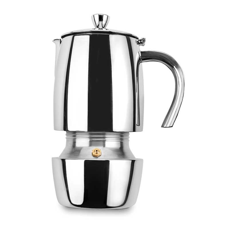 Cafeteira modelo Luxe fabricada em aço inoxidável 18/10 de grande qualidade e resistência, com acabamento brilho Compatível com todos os tipos de fogos.