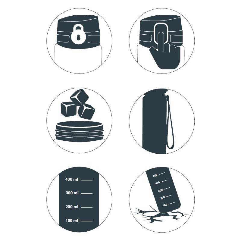 Fabricada em tritán livre de BPA, um material leve, versátil e resistente a impactos e rupturas.