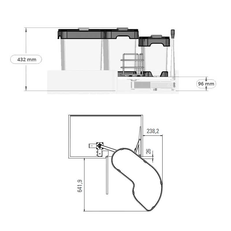 Sistema de contentores de resíduos reversível de extracção completa para rinconero. Os 3 recipientes são fabricados em poliestireno reciclável resistente a altas ou baixas temperaturas, choques, arranhões e a produtos químicos. Este sistema reversível dá a possibilidade de instalar em móveis de canto tanto à esquerda como à direita.