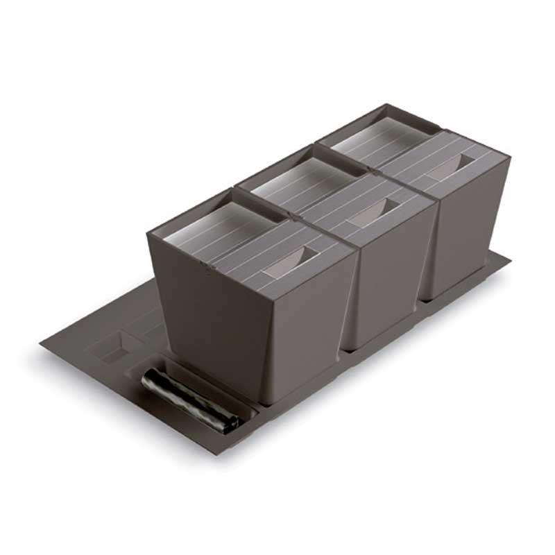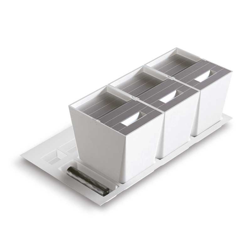 Kit de cubos de reciclagem ecológica Premiere para gavetas extensões de cozinha. Disponível na cor branca ou antracite, e para diferentes medidas de móveis.
