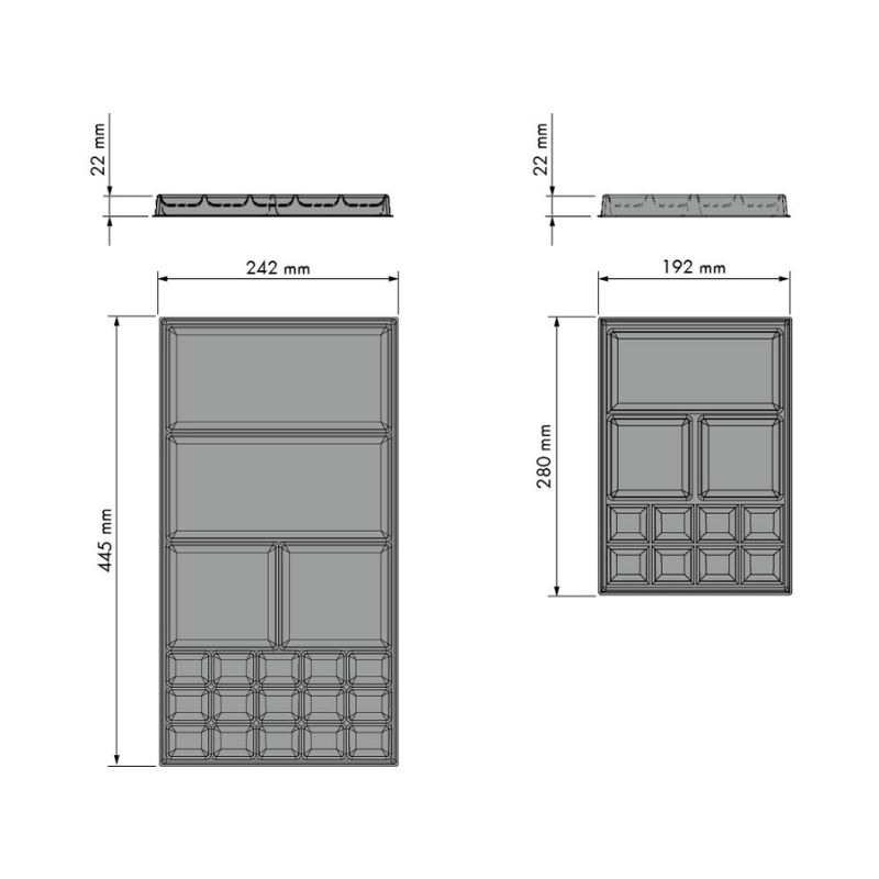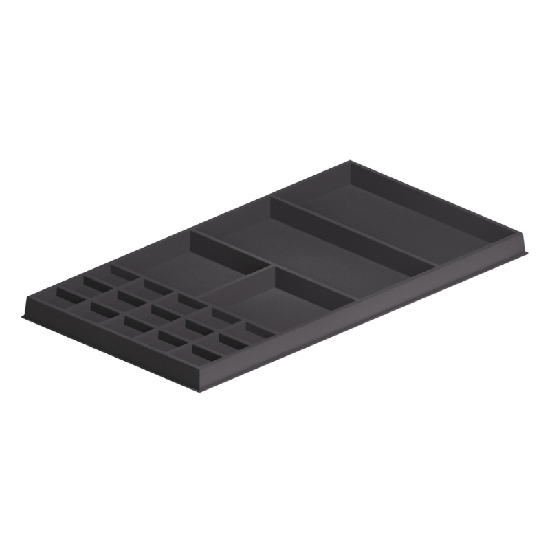 Bandeja ideal para guardar joias e pequenos acessórios nas gavetas de armários e closets. Disponível no acabamento antracite.