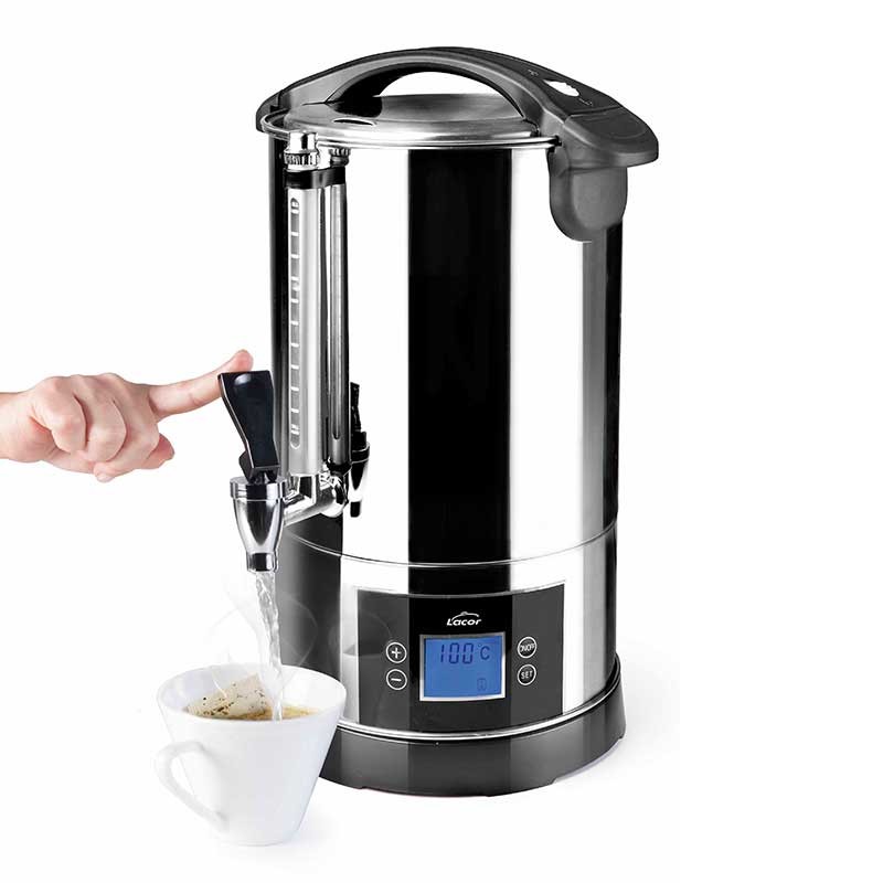 Caldeira elétrica Airpot fabricado em aço inoxidável de alta qualidade com torneira distribuidor e display digital para graduar a temperatura.