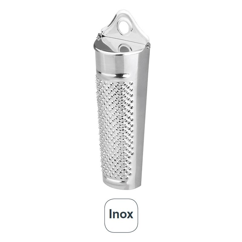 Ralador de noz moscada tamanho mini de 14 cm de altura fabricado em aço inoxidável 18/10 de alta qualidade e excelente resistência à corrosão.