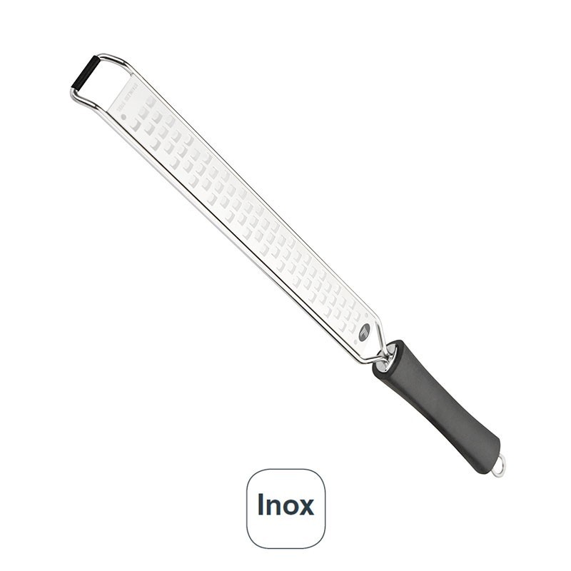 Ralador longo com manga e passo espessura, fabricado em aço inoxidável 18/10 de alta qualidade e excelente resistência à corrosão.