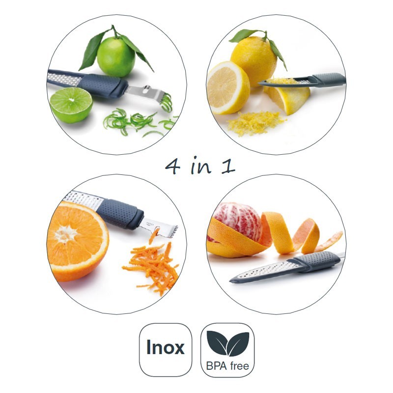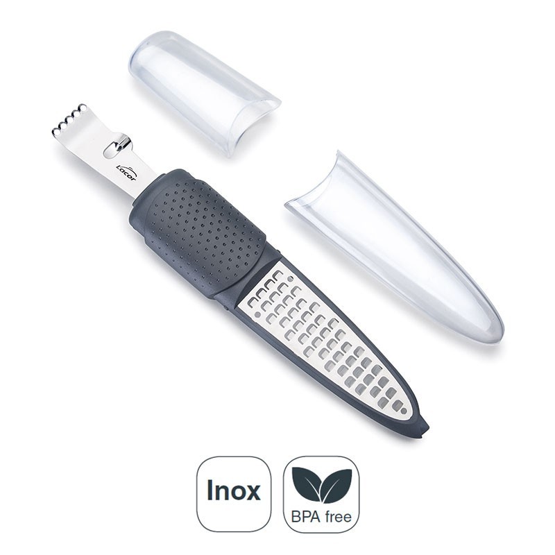 Ralador de 18 cm de comprimento para cozinha, concebido também como uma ferramenta para corte decorativo de legumes, frutas e produtos hortícolas.