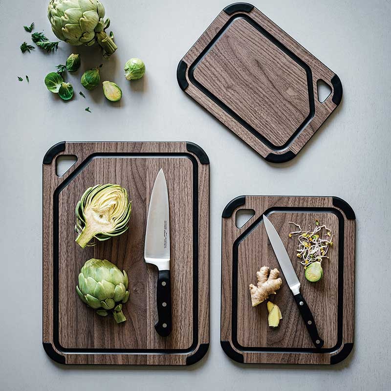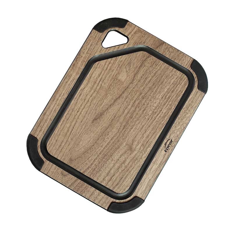 Tábua de cortar modelo WALNUT fabricada em fibra de madeira durável, resistente, indeformável e antibactérias.