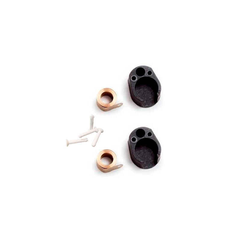 Preço por par de molas com tampas pretas e pinos de fixação brancos.