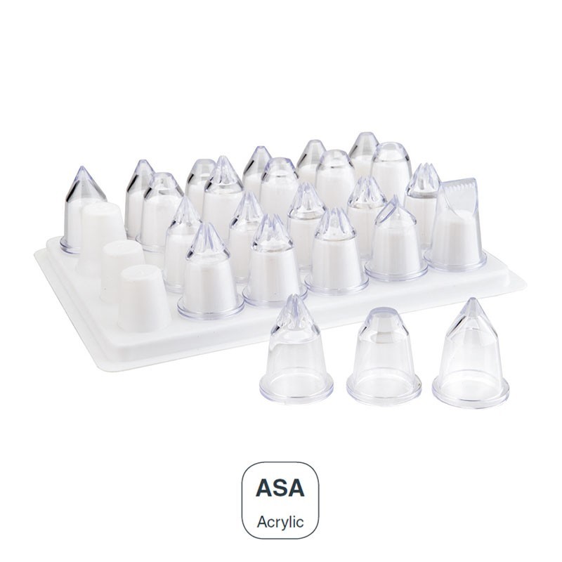 Set com 24 bicos de confeitaria variadas para decorar com saco de confeitar, fabricadas em plástico acrílico de alta qualidade e resistência.