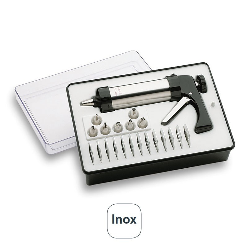 Estojo com arma de 250 ml, fabricado em aço inoxidável conjunto de bicos e acessórios para decorar ou preencher produtos de pastelaria.