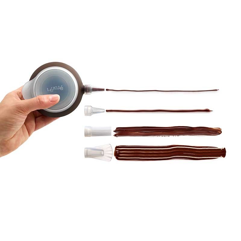 Decorar é terminar de cozinhar, seus pratos não estão completos, até que lhes dá o seu toque final. O decopen é um utensílio de pastelaria para servir molhos e outros com um acabamento profissional e uma operação muito simples. Inclui 4 bicos diferentes para personalizar sua decoração.