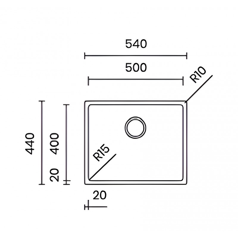 Cuba em aço inoxidável modelo Ferrara Plus de 540 x 440 mm para instalação por baixo da bancada, com opção de instalação à face ou filotop.