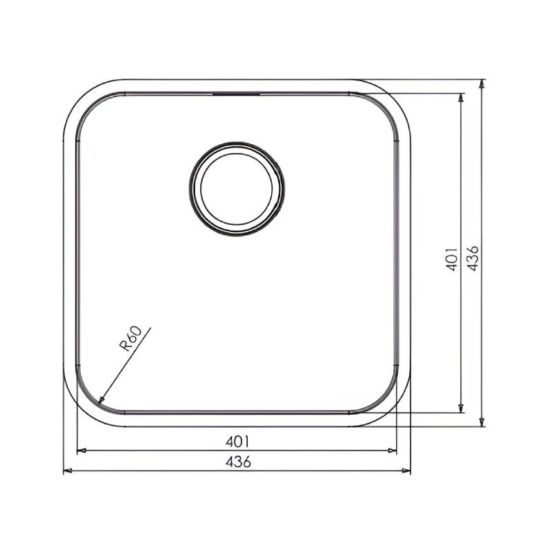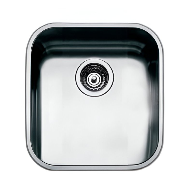 Pia de aço inoxidável modelo Ferrara de 436 x 436 mm para instalação em bancada.