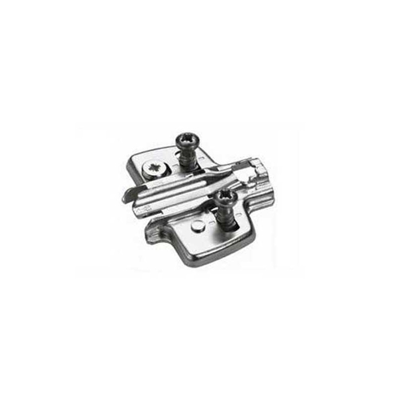 Base em forma de cruz com regulagem de altura +/- 2 mm com excêntrica para montagem de dobradiças Hettich em armários de cozinha.