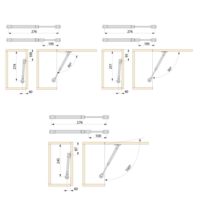 Pistões para móveis que permitem a abertura das portas de madeira ou com moldura de alumínio. Proporcionam uma elevação amortecida da porta elevável em móveis de cozinha, casa e banheiro.