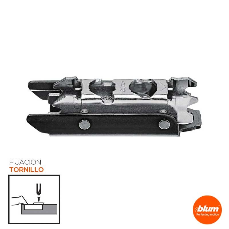 Calço reto para dobradiça Blum na cor preto ônix com excêntrica de ajuste e montagem com parafusos.