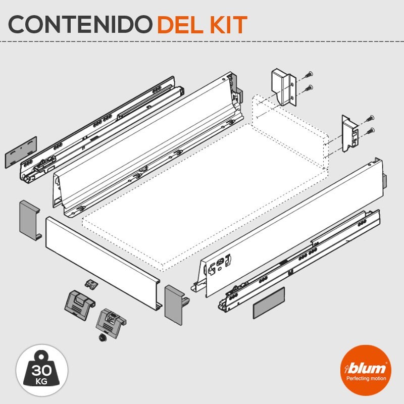 KIT Gaveta INTERIOR TANDEMBOX M COM BASE CINZA