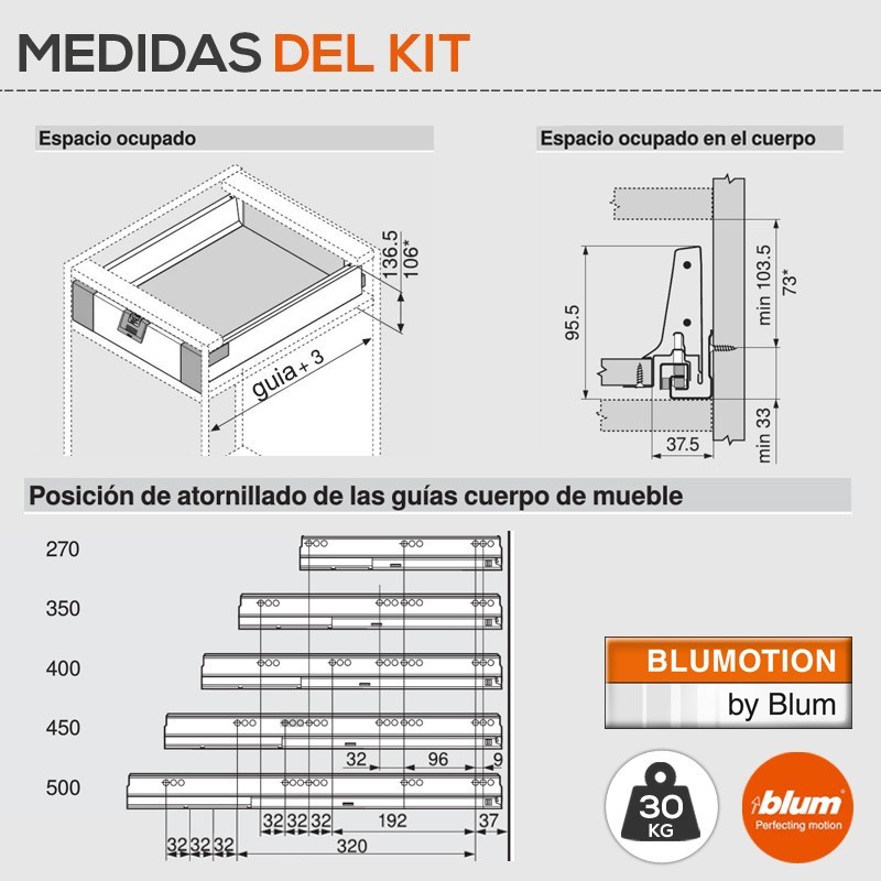 Importante: a gaveta completa com base em melamina está pronta para ser instalada em móveis de 16 mm de espessura.