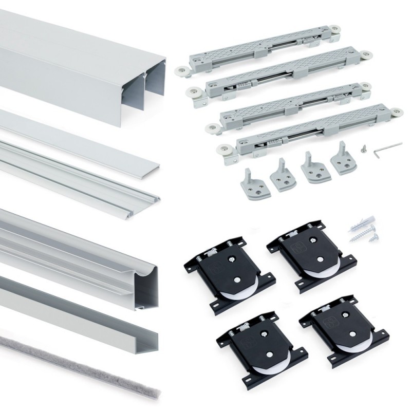 Kit para armário Roupeiro com duas portas de correr, que inclui todas as ferragens e perfis necessários para a sua montagem e instalação.