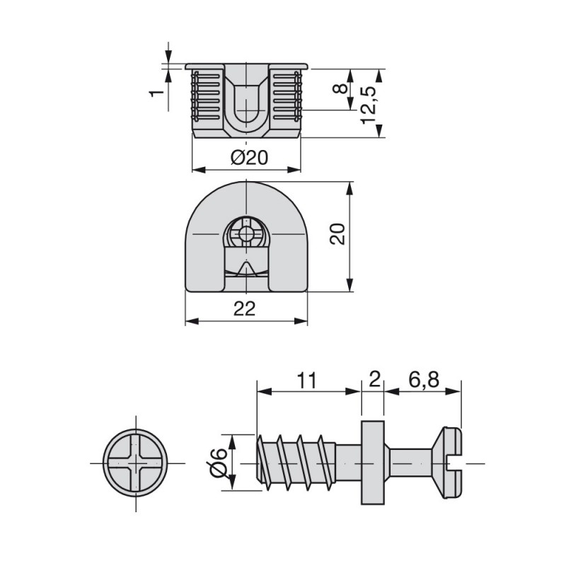 Caneco de união Fix serve para fixação e suporte de prateleiras e prateleiras em armários, estantes e armários de casa. Proporcionam uma fixação sólida e resistente, de prateleiras, ficando os engates escondidos. São válidos para espessuras de placa de 16 mm, já que para sua montagem, é necessário um mecanismo prévio de diâmetro de 20 mm e profundidade de 13 mm, desta forma ficam encaixados na parte inferior na prateleira. As prateleiras são colocados a partir de cima e de frente, enganchándose com o parafuso localizado na lateral do móvel. Os engates são fabricados em zamak com acabamento niquelado e os parafusos em aço torneado com acabamento zincagem.