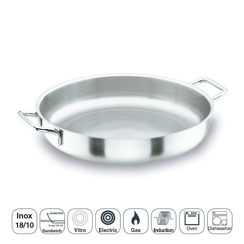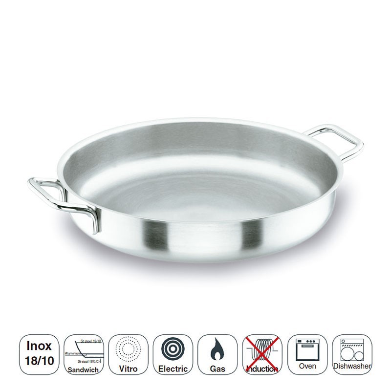 Paellera modelo profissional Wagner fabricada em aço inoxidável 18/10 extra com fundo termodifusor sanduíche adequado para placas de indução, elétricos, placas e fogões a gás.