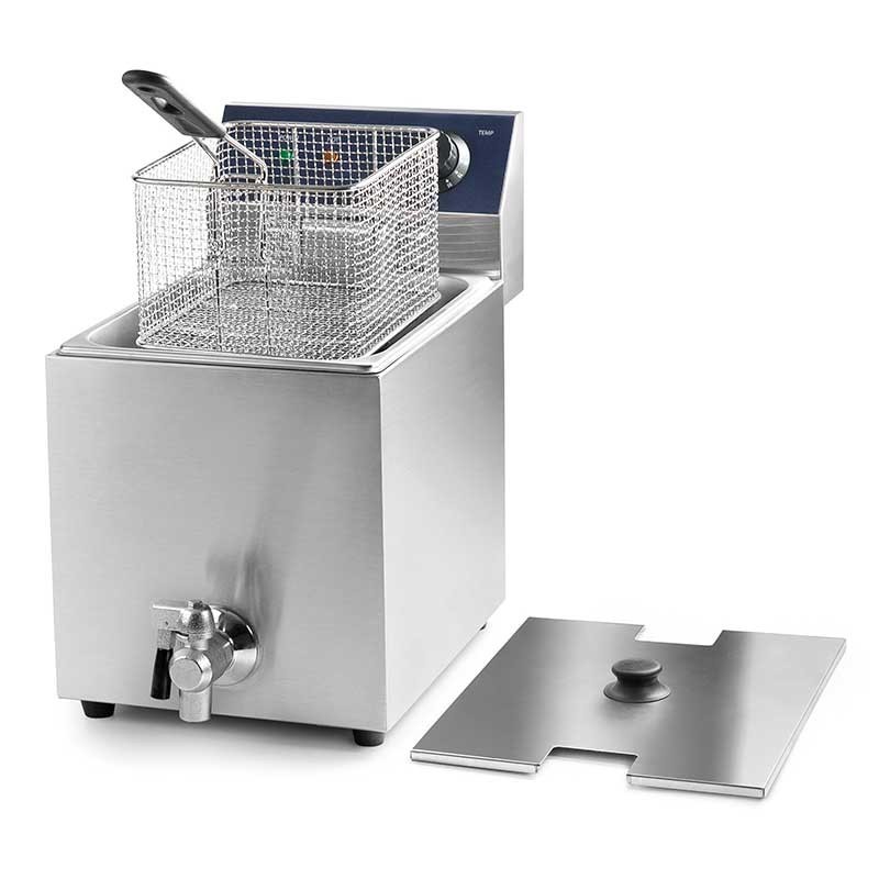Fritadeira elétrica profissional de 8 L e 3250 W fabricada em aço inoxidável de alta qualidade e excelente resistência à corrosão.