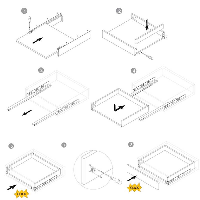 Importante: As gavetas Vertex de Emuca são projetados para ser instalados em armários de cozinha ou casa de banho com uma espessura de lado 16 mm.