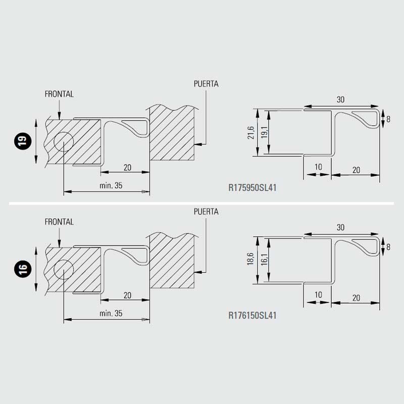 Este perfil gola oferece a vantagem de poder instalar-se de forma simples em qualquer móvel alto, já que não necessita a Maquinação do cume do módulo.