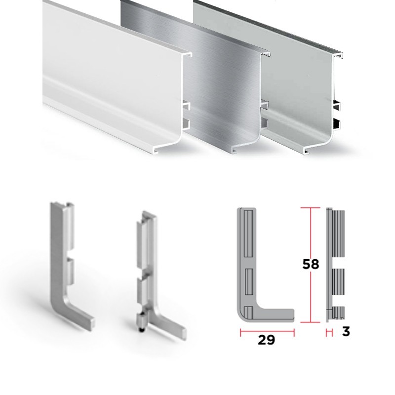 Set de tampas para acabamento final dos perfis de gola horizontais superiores para móveis de cozinha.