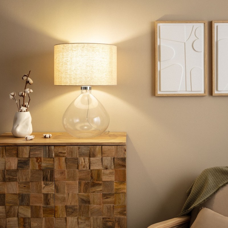 O candeeiro de mesa em tecido e vidro Marseille é o complemento decorativo ideal para adicionar um toque pessoal a qualquer espaço. Graças ao seu design e materiais, ele se encaixa perfeitamente em estilos como Mediterrâneo, natural, clássico ou boho-chic.