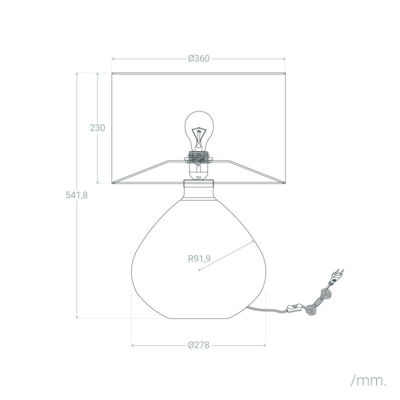 Características do candeeiro de mesa em tecido e vidro Marseille