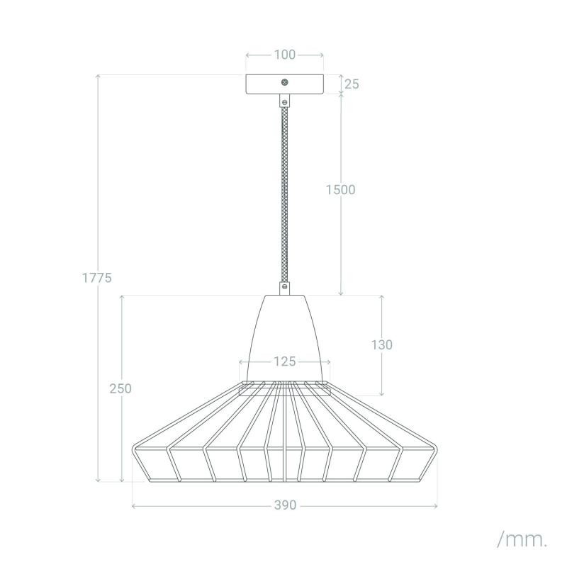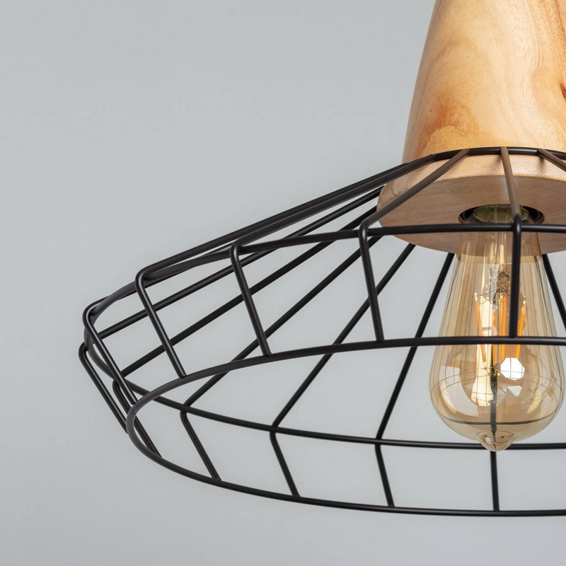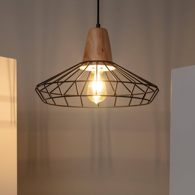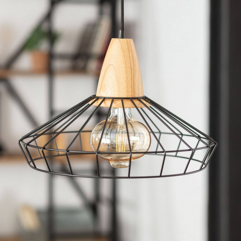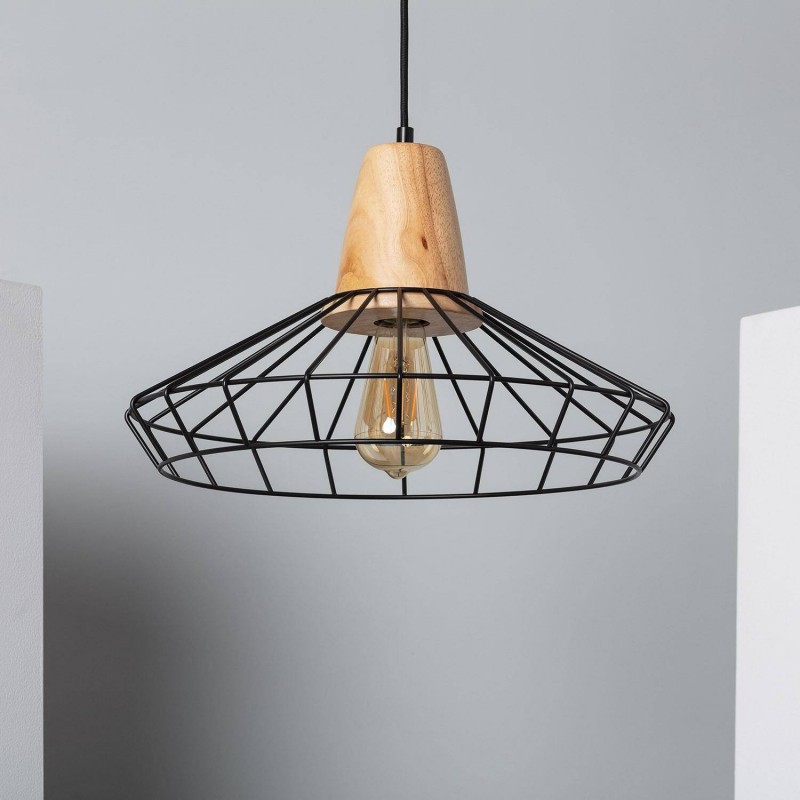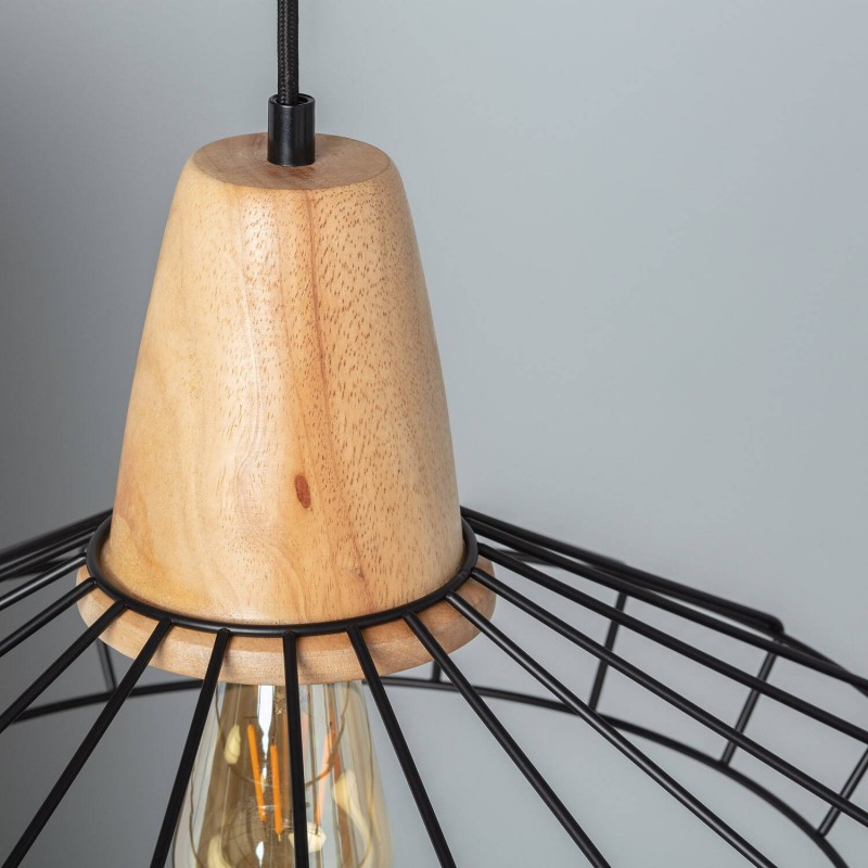 A Lâmpada Pendente De Metal Keler é fabricada com uma base de suporte de lâmpada de madeira, complementada por uma estrutura de metal na cor preta que lhe confere a sua forma distinta.