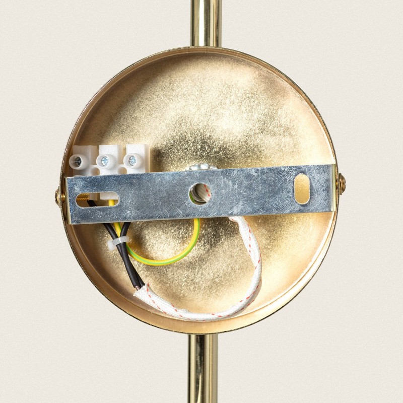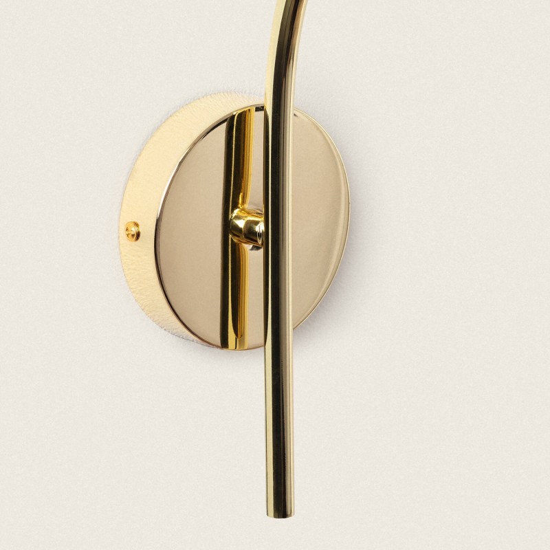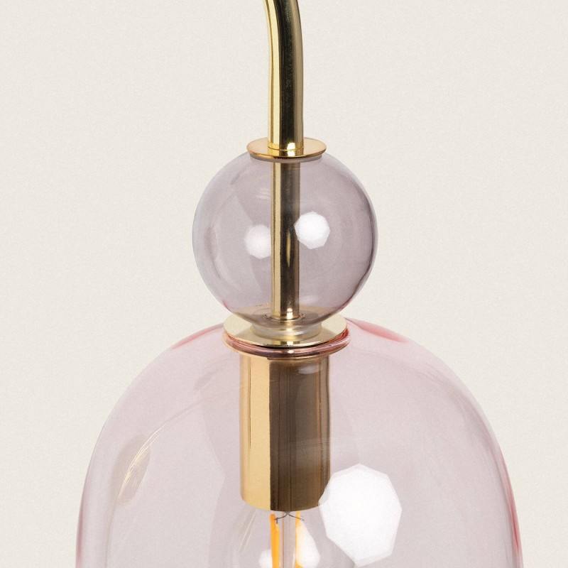 Esta lâmpada de parede é ideal para espaços com estilo vintage, destacando-se pela sua fabricação principal em vidro colorido e metal dourado.