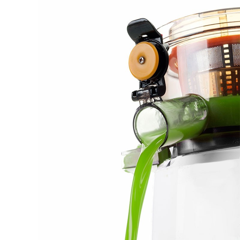 Com o fim de desfrutar de uma vida sã e saudável, apresentamos o extrator de sucos com tecnologia de motor de rotação lenta, equipada para uso semi-permanente, que garante a extração de sucos com a mínima perda de nutrientes ou de oxidação. A capacidade de absorção é 4 vezes maior do que a que se obtém ao comer frutas frescas extraindo o máximo de nutrientes e sabor de frutas, legumes e produtos hortícolas.