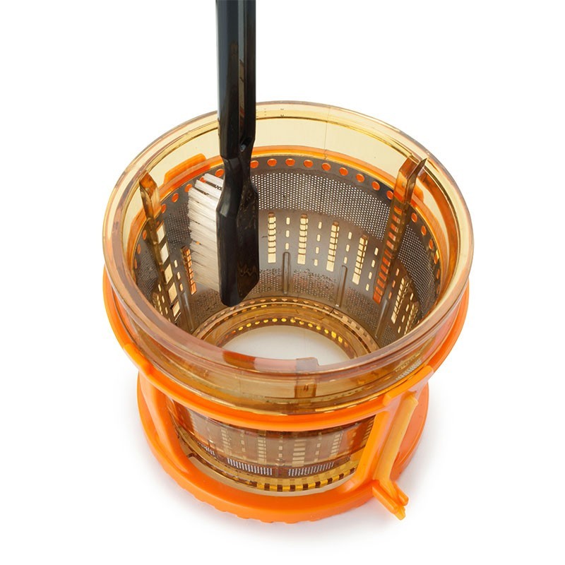 Com um design moderno e inovador, este espremedor permite introduzir os ingredientes inteiros, acelerando o tempo dedicado à extração de sucos. Além de uma estrutura totalmente desmontável, o extrator incorpora uma escova para acessar os furos do filtro e os sites mais complexos, garantindo assim a sua fácil limpeza.
