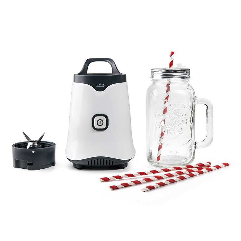 Liquidificador modelo Mix & Go com jarra de vidro e 4 lâminas de aço inoxidável ideal para a preparação de batidos, sumos, triturar gelo, frutos secos...