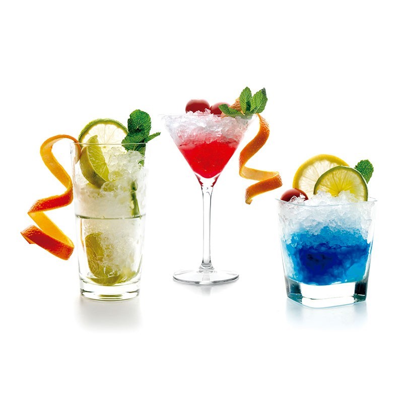 Triturador de gelo elétrica de 100 W de potência 5500 r.p.m. com uma capacidade de 0,5 litros. Fabricada com aço inoxidável 18/10 de alta qualidade e resistência à corrosão.
