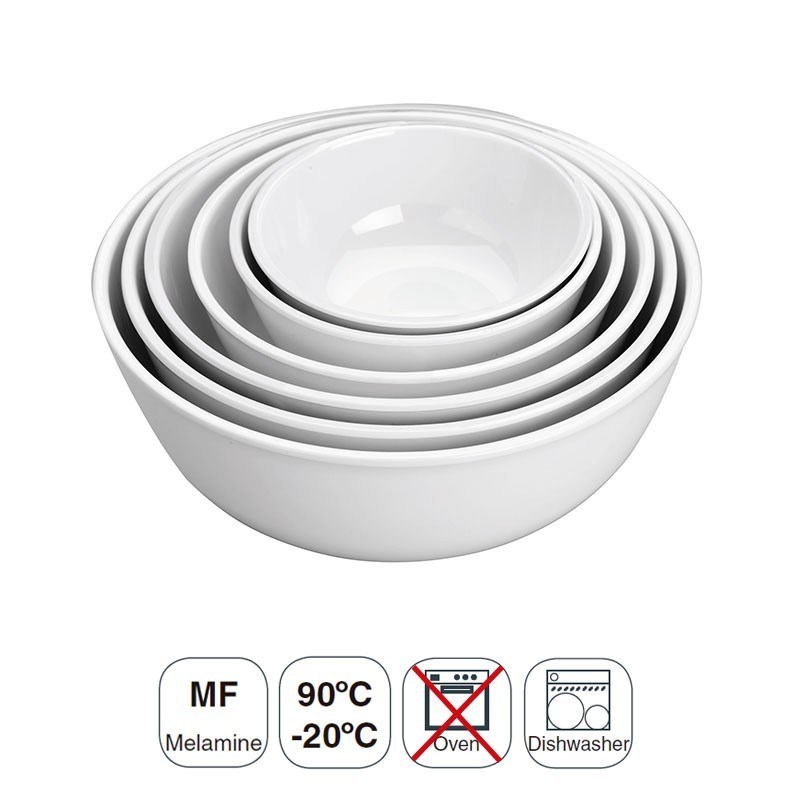 Tigela redonda série Melamina fabricado em resina sintética de alta resistência e apta para máquina de lavar louça. Disponível em várias medidas.