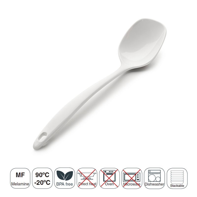 Colher reta de 25 ou 30 cm de comprimento para escolher a gama Classic White produzida em resina sintética de alta resistência e apta para máquina de lavar louça.