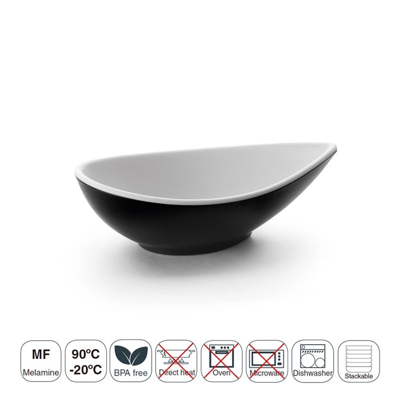 Tigela de lágrima oval da série oriental Fuji, fabricado em resina sintética de alta resistência e apta para máquina de lavar louça. Disponível em 2 medidas.