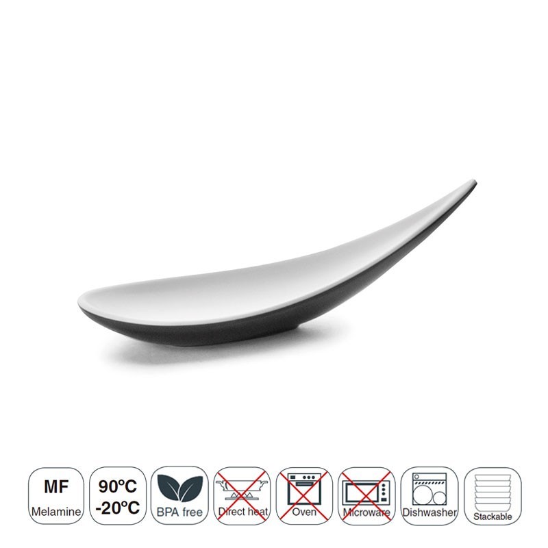 Colher de snack da série oriental Fuji produzida em resina sintética de alta resistência e apta para máquina de lavar louça. Medidas: 14,5x14,5x4,5 cm