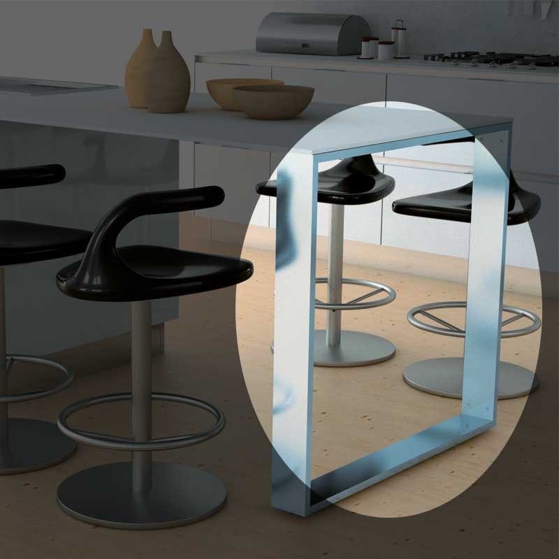 Estrutura com perfil de alumínio de 100 x 20 mm para formar uma península de cozinha. Inclui 2 reguladores de altura na parte inferior. Disponível em diversas medidas e acabamentos. Leia especificações abaixo.